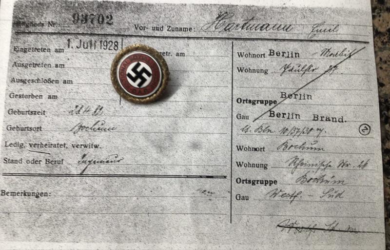 BADGE NUMBER 93702 TO EMILHARTMANN, OF BERLIN.